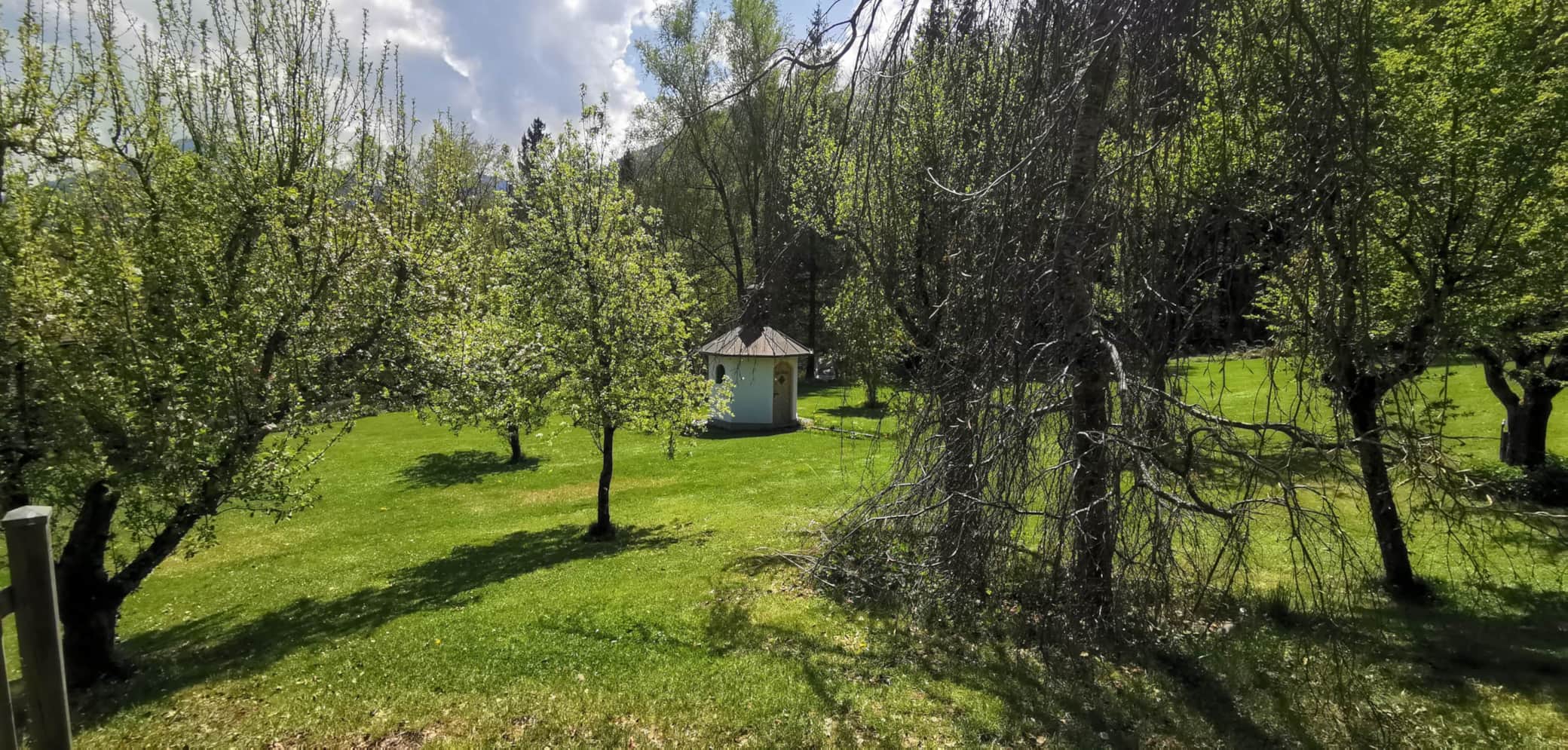 Im Jahr 2017 haben wir eine Marien-Kapelle gebaut, die seither unseren weitläufigen Garten noch schöner macht. Damit haben wir uns der alten Tradition einer eigenen Hauskapelle, wie sie vielerorts im bayerischen Oberland gepflegt wird, angeschlossen. Ob an Festtagen, für persönliche Momente der Einkehr und Stille oder auch für kleine feierliche Anlässe wie Taufen oder Erneuerungen des Ehegelübdes ist die Marien-Kapelle der ideale Ort und kann gerne genutzt werden.