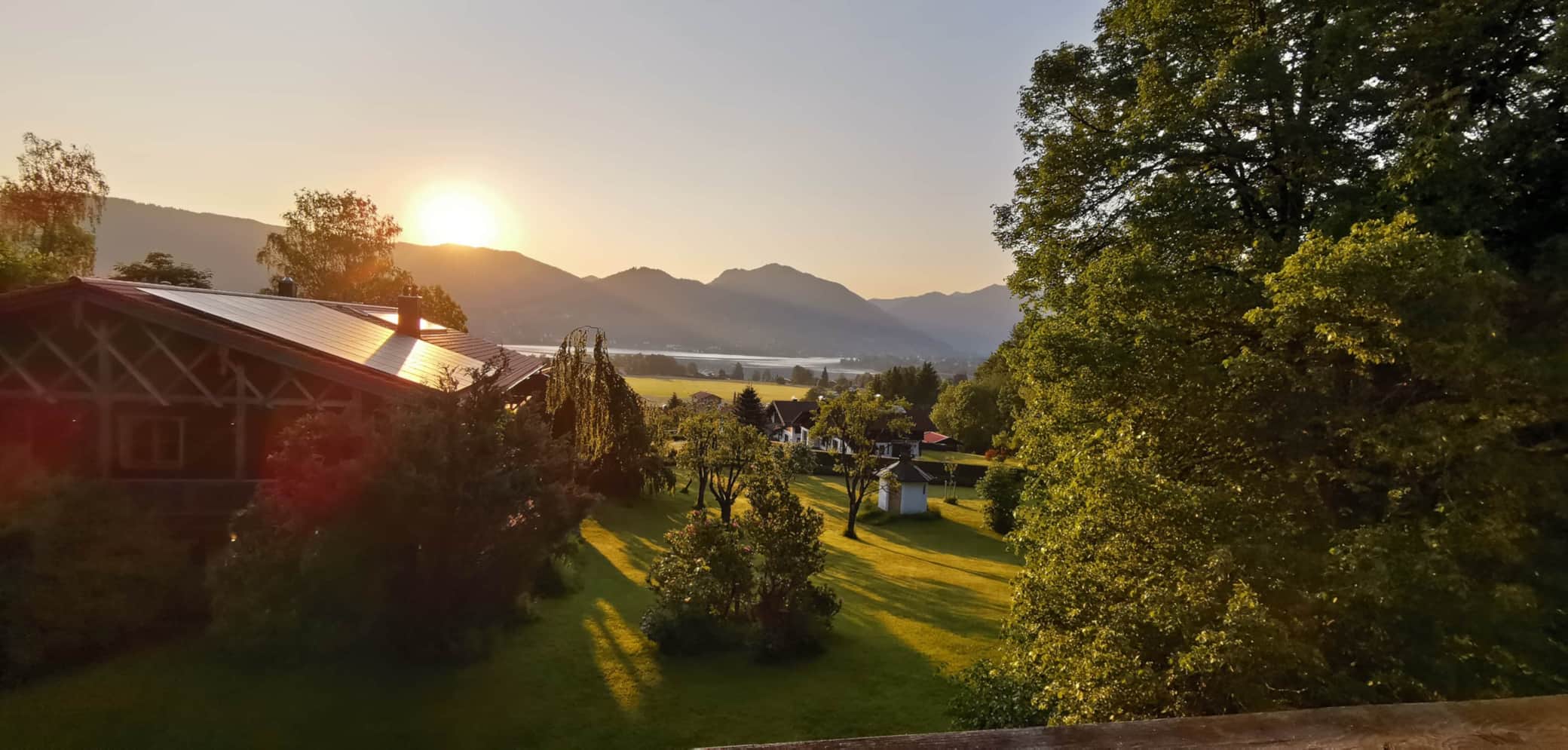 Unser Garten ist ein Ort der Ruhe und Erholung. Von hier genießen Sie den Blick auf den Tegernsee, eingebettet in die Natur des angrenzenden Waldes. Alte Bäume spenden Schatten und die kleine Kapelle am Rand des Gartens verleiht dem Platz eine besondere Atmosphäre. Ob beim Frühstück im Freien, beim Spaziergang durch den Garten oder beim Innehalten mit Aussicht – hier verbinden sich Natur, Stille und Weite zu einem einzigartigen Erlebnis am Tegernsee.